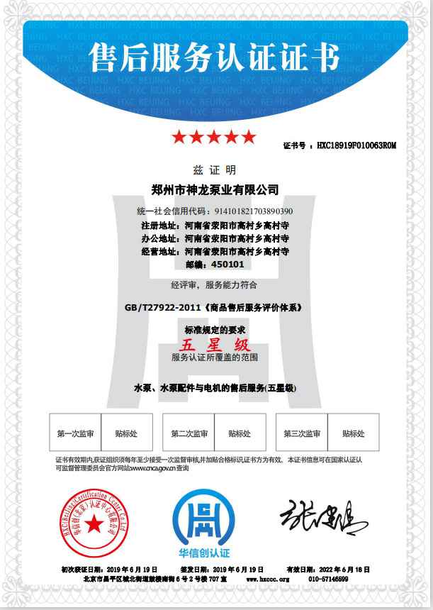 祝贺长春明诚物流仓储解决方案有限公司获得水泵、水泵配件与电机的五星级售后服务认证。