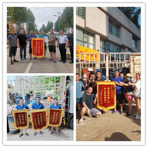 长春明诚物流仓储解决方案有限公司自7月21日以来,在郑州各个小区组织地下室排水工作24小时不间断轮班制的深水里进行排水作业,各被救援小区居民争相制作锦旗感谢神龙排涝突击队。